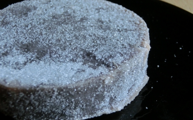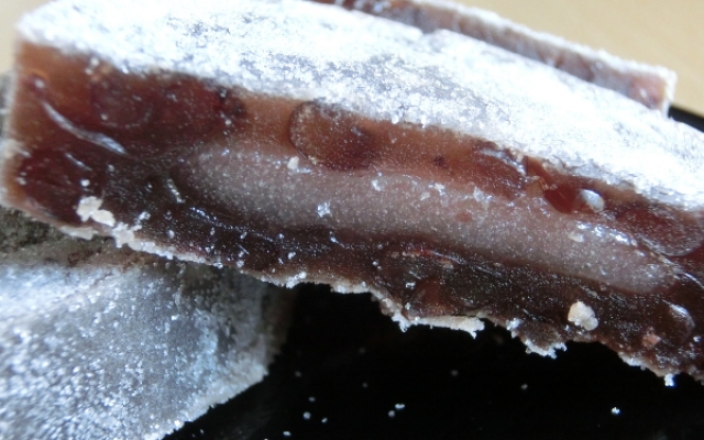 グラニュー糖のシャリシャリ感が、少しだけ粒あんの食感を邪魔している気がしますが、求肥のモチモチ食感とバランスが採れていて、全体的にとても美味しいです。