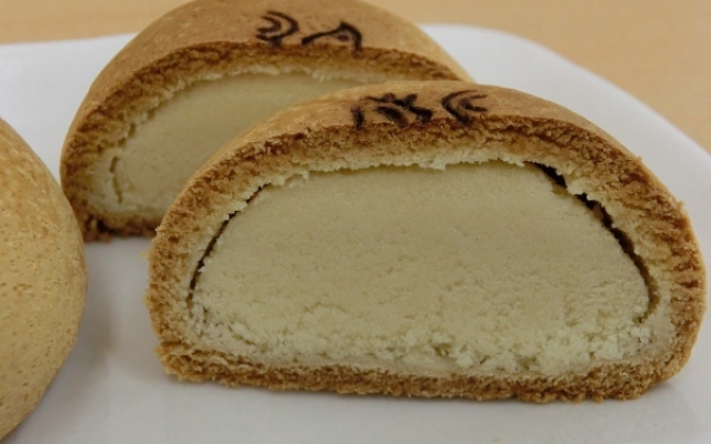 中にはキメが細かいたっぷりの黄身あん。想像よりも白く、卵の味は感じられませんでした。
