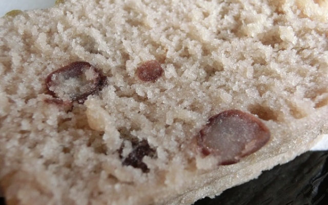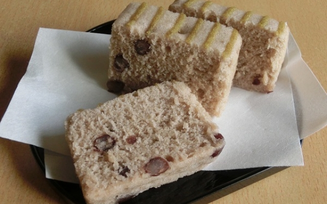 ほど良い自然の甘さがとても上品で、小豆の量も丁度いいです。この写真から、豆のホクホク感が伝わりますでしょうか?豆の形がつぶれずに焼かれているということは、とても丁寧に炊いて優しく混ぜ込んでいる証拠です。
